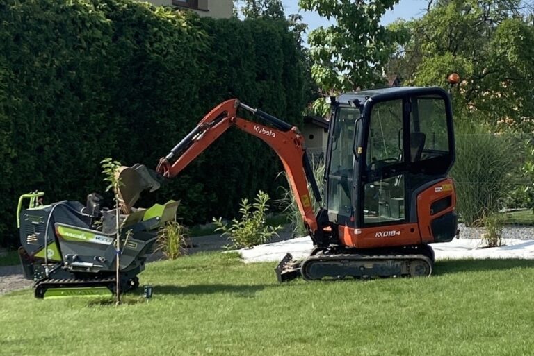 K dispozici máme širokou škálu strojů včetně bagrů, smykový nakladač, nákladní automobil s nosičem kontejnerů atd. Mechanizaci není problém i půjčit.